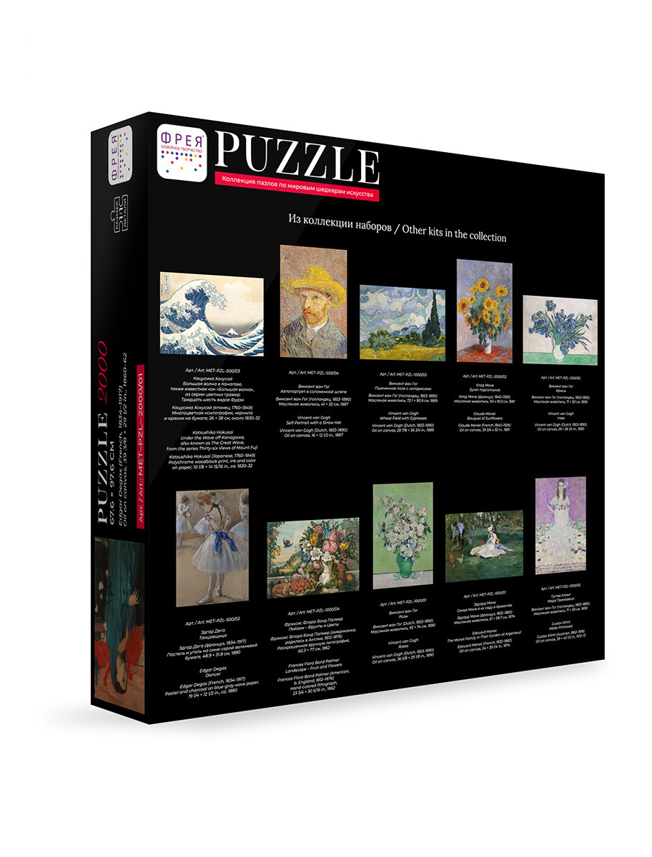 Пазлы ТМ Фрея серии " Мировые шедевры искусства" - это монументальные и всемирно известные картины в оригинальном формате игрового набора! Фрагмент за фрагментом вы повторите сюжет уникального шедевра изобразительного искусства и сможете изучить его в мельчайших деталях. Готовый пазл с таким сюжетом может стать интересным и необычным украшением интерьера. Также пазлы ТМ Фрея будут отличным подарком для ваших близких. Детали пазлов этой серии толще обычных. Для изготовления деталей мы используем цельнолитой картон. Такой картон не деформируется и не расслаивается даже при многократной сборке пазла. Допускаются вариации в размерах внутри одного артикула. Актуальная информация указана на упаковке товара. Сообщить о неточности в описании