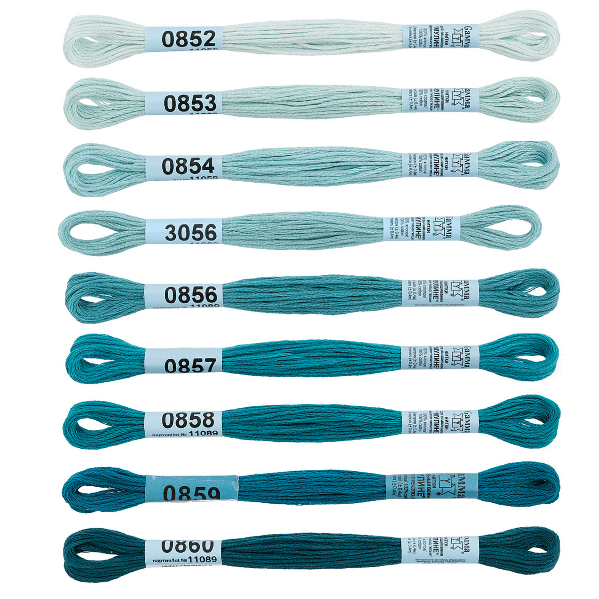 Нитки для вышивания Gamma набор мулине № 10 100% хлопок 9 цв. x 8 м Морская волна