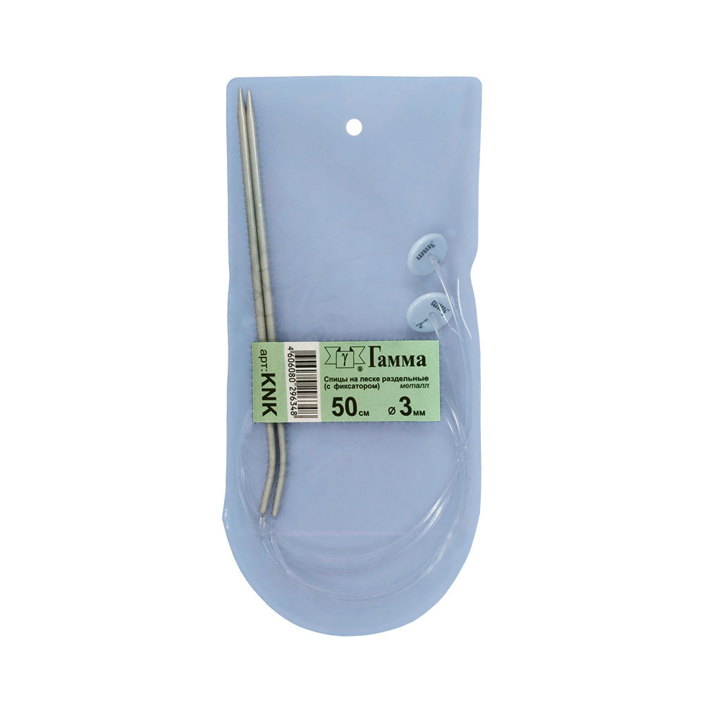 Аналог прямых спиц. Гибкость лески позволяет распределить вес изделия при вязании. Облегчает вязание больших, тяжелых вещей идеально подходят для вязания воротников. Металлические спицы «GAMMA» имеют покрытие, благодаря, которому петли хорошо скользят по поверхности спиц. Спицы прочные, легкие, гладкие, удобные в использовании. Кончики спиц закругленные, гладкие и ровные. Спицы KNK предназначены на вывязывания широких деталей изделия / спинки, переда, рукавов/.